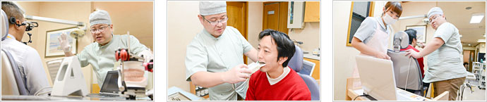 歯科用CT(3次元立体画像)を利用することで、レントゲンでは見えない部分も可視化することができ、より一層精密な診査・診断、そして治療が可能になります。当然、咬み合わせを考慮する際もプラスの効果を発揮します。