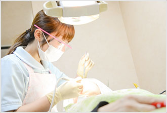 エアフローとは、専用機器を使い、歯に粉末を吹き付けてコーヒーや紅茶の茶渋やプラーク(歯石)を簡単に取り除くクリーニングシステムです。こちらも痛みが抑えられ、さわやかな爽快感が残ります。